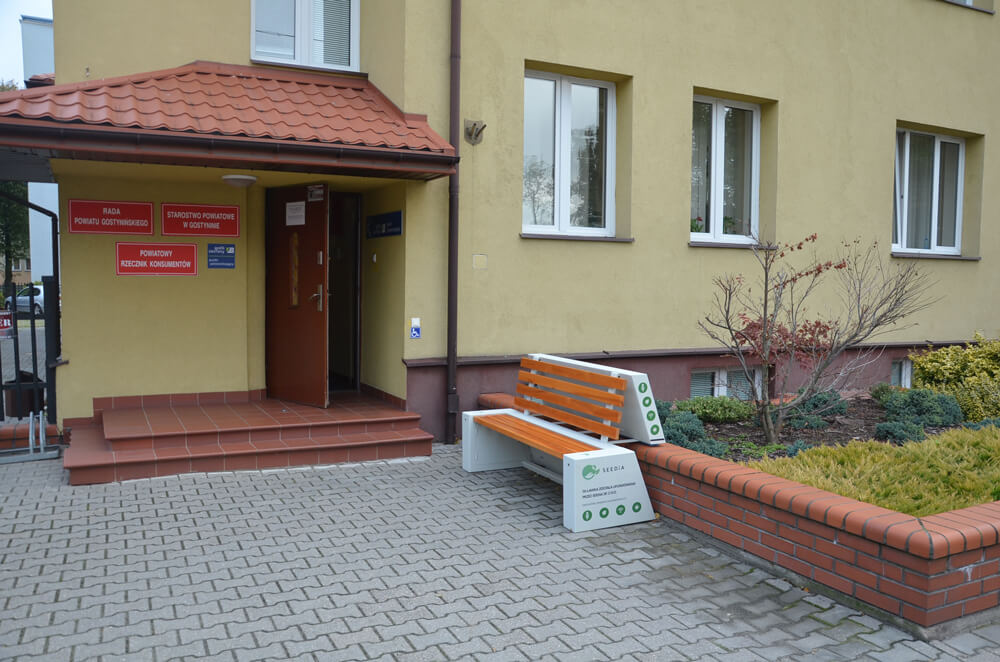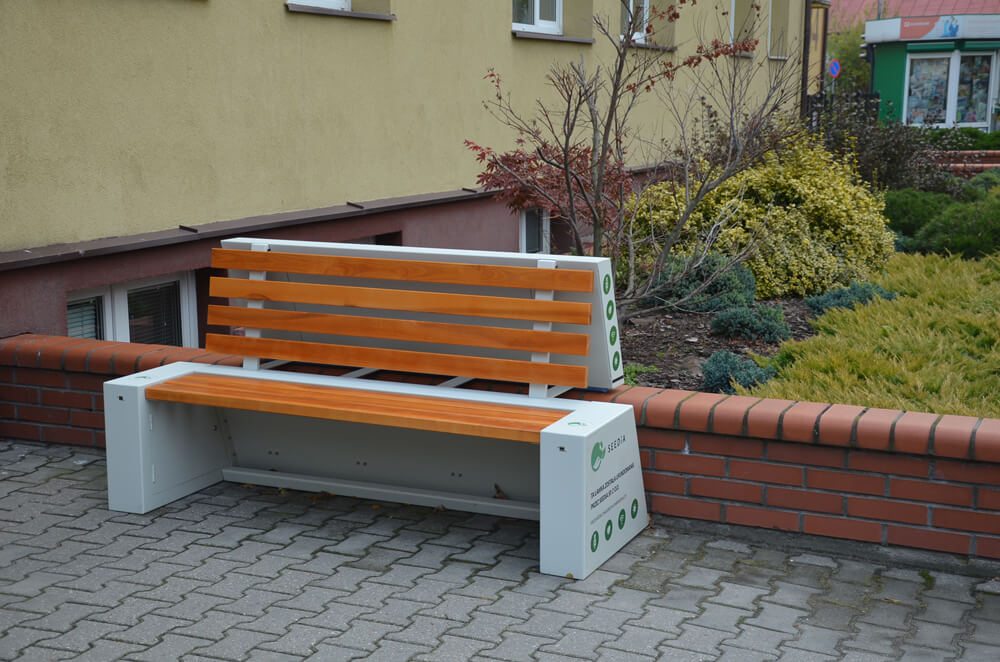 Smart bench from the URBAN line was recently installed in Gostynin. Its appearance is the first stage of collaboration between SEEDiA and the District Authority Office as part of the pro-environmental project ECO-SOLARIS. The aim is to educate the public on the subject of renewable energy sources.