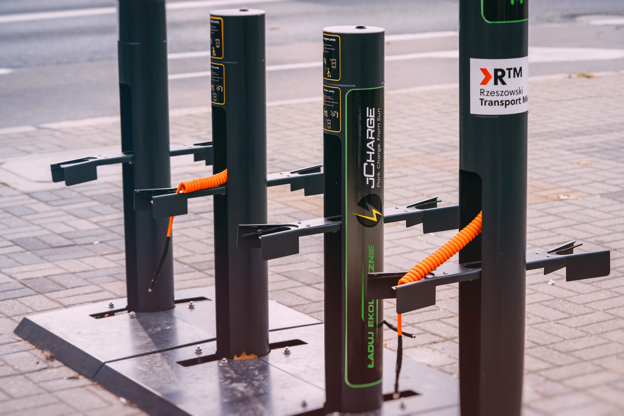 For Mobility Hubs to become widespread and widely available in cities, it is required that the infrastructure installed there is as independent as possible, both from energy and additional connections. For this reason, jCharge charging stations are devices that can charge without additional mains power and connection. What’s more, they can stand in literally any location to power and park electric scooters or city bikes.